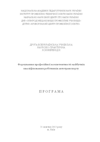 In the conditions of modernization of vocational education, the main priority for the training of future skilled workers, in particular for the motor transport industry, is to attract students of vocational and technical schools to scientific and practical activities. This facilitates the establishment of cooperation between the vocational schools of Ukraine, the exchange of experience of future skilled workers, the promulgation of innovations and their dissemination in the regions of Ukraine. The program of the conference, created on the basis of the wishes of the students who showed initiative prior to the all-Ukrainian student scientific and practical conference, covers a variety of areas of professional training for workers in the motor transport sector of the Ukrainian economy.