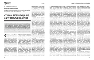 - Денисюк, І.С. (2016) Musical improvisation: from music teacher to student Мистецтво та освіта, 2 (80). pp. 18-21. ISSN 2308-8885