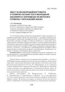 - Логвінова, Ірина Петрівна (2016) The content of the personality development psyhological correction work for mentally retarded children in elementary school Проблеми сучасного підручника, 17. pp. 209-217. ISSN 2411-1309