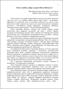 The article is devoted Nelle Grigorevne Nichkalo - Teachers, Psychologists, Scientists, Organizers, Creator, Bereginja.