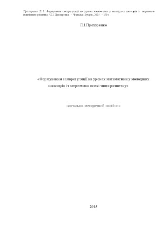 - Прохоренко, Л.І. (orcid.org/0000-0001-5037-0550) (2015) Formation of self-regulation in mathematics lessons with junior pupils with a delay in mental development [Teaching Resource]
