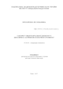 - Прохоренко, Л.І. (orcid.org/0000-0001-5037-0550) (2017) Self-regulation of learning activities of students with mental retardation Other thesis, Інститут спеціальної педагогіки.