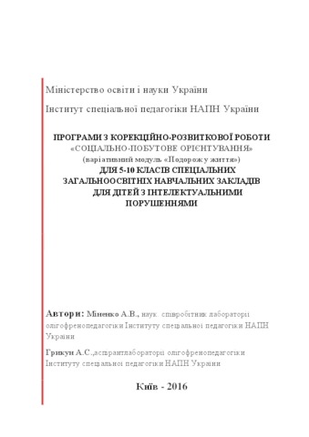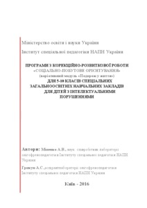 - Міненко, А.В. and Грикун, А.С. (2016) Programs for correctional and development work for 5-10 grades of special general educational institutions for children with mental retardation "Social-household orientation" (variable module "Travel to life") [Teaching Resource]