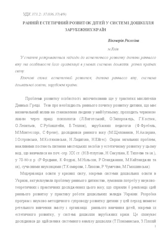 - Рагозіна, Вікторія Валентинівна (2012) Early aesthetic development of children in preschool foreign countries Вісник Інституту розвитку дитини. Вип 24.Серія: Філософія, педагогіка, психологія, 24 (24). pp. 123-129.