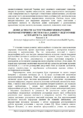 - Яцишин, А.В. (orcid.org/0000-0001-8011-5956) (2017) Some aspects of the application of international science-computer systems and databases in the training of post-graduate students and doctoral students In: Теоретико практичні проблеми використання математичних методів та комп’ютерно-орієнтованих технологій в освіті та науці . Ун-т ім. Б. Грінченка, м. Київ, Україна, pp. 141-145.