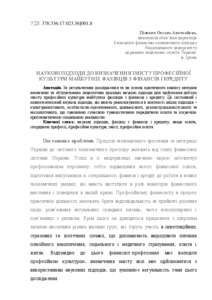 | Keywords: | Scientific approaches, experts in finance and credit, higher education and related professions, professional culture, the content of vocational education. |