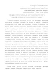 - Володарська, Наталія Дмитрівна (2017) Gender stereotypes of changing of life perspectives and strategies of a person in crisis situations Вісник Київського Національного університету імені Тараса Шевченка. Психологія, 1 (6). pp. 28-32. ISSN 1728-3817