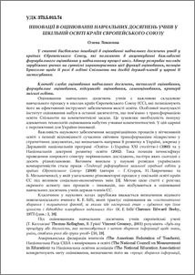 - Локшина, Олена Ігорівна (2009) Інновації в оцінюванні навчальних досягнень учнів у шкільній освіті країн Європейського Союзу Порівняльно-педагогічні студії (2). pp. 107-114. ISSN 2306-5532