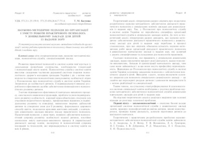 | Keywords: | to put with paropsiss, scientifically methodical approaches, psychological service, specialized establishment. |