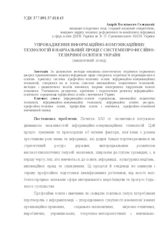 - Селецький, А.В. (2017) The introduction of information and communication technologies in the educational process of vocational education system in Ukraine (analytical review) Theory and methodology of vocational education, 12 (1).