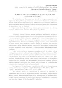 - Чиханцова, О.А. (2014) Foreign language learning of students with non-Linguistic specsality Euro-american scientific cooperation, 6. pp. 91-97. ISSN ISBN 978-1-77192-125-1