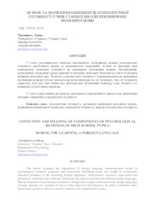 The article examines the importance of foreign language communication model of psychological readiness graduates and determined correlation factor and weight of components indicated readiness to the mastering foreign languages: motivational, cognitive, operational and procedural, emotional and volitional. Determine the purpose and need for learning foreign languages. The development of psychological readiness of high school pupils to the mastering foreign languages strongly depends on a number of factors both subjective and objective. In order to influence these factors had a positive, there is a need to identify and comprehensive study. The paper presents the results of the correlation analysis between the selected four components of psychological readiness.