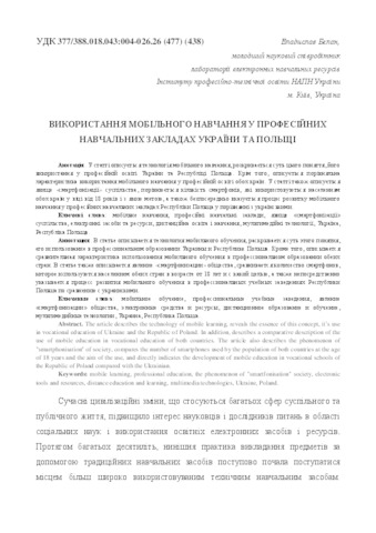 - Белан, Владислав Юрійович (2017) The use of mobile learning in vocational educational institutions of Ukraine and Poland Збірник наукових праць п'ятої Міжнародної науково-практичної конференції "Інформаційно-комунікаційні технології в сучасній освіті: досвід, проблеми, перспективи". pp. 194-197.