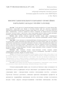 The article describes the technology of mobile learning, reveals the essence of this concept, it's use in vocational education of Ukraine and the Republic of Poland. In addition, describes a comparative description of the use of mobile education in vocational education of both countries. The article also describes the phenomen of "smartphonisation" of society, compares the number of smartphones used by the population of both countries at the age of 18 years and the aim of the use, and directly indicates the development of mobile education in vocational schools of the Republic of Poland compared with the Ukrainian.