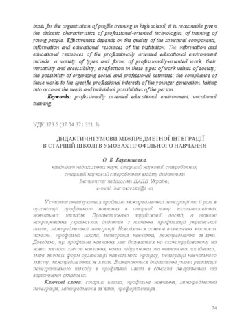 - Барановська, Олена Володимирівна (2017) Didactic conditions of intersubject integration in high school under profile training Гуманітарний вісник Полтавського національного технічного університету імені Юрія Кондратюка, 1 (1). pp. 74-80. ISSN 2521-1579