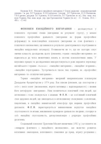 - Наумова, Вікторія Юріївна (2014) Phenomenon of emotional burnout Освіта дорослих: енциклопедичний словник. p. 443.
