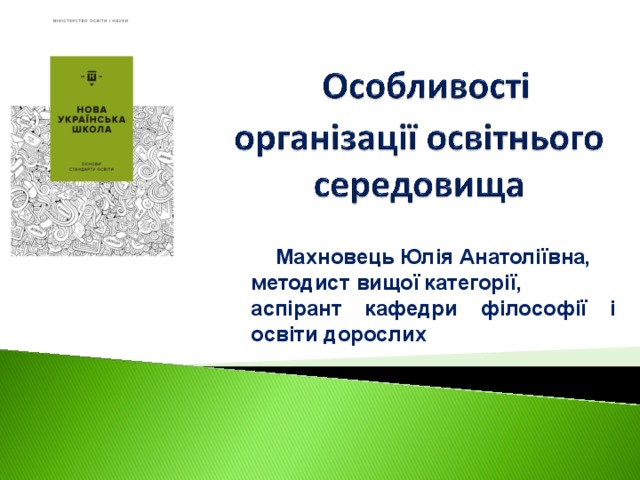 Presentation contains materials in relation to the features of new educational environment in the conditions of New Ukrainian school. On sliding seats the features of planning and design of educational space are presented variants of organization of educational environment and placing of information on the walls of the classroom, requirements to registration of the classroom.