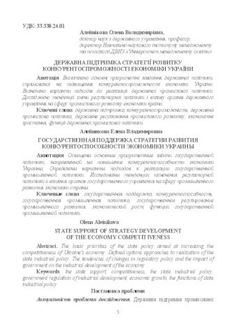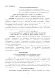 | Keywords: | the state support, competitiveness, the state industrial policy, government regulation of industrial development, economic growth, the functions of state industrial policy |