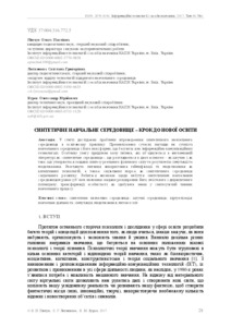 - Пінчук, О.П. (orcid.org/0000-0002-2770-0838), Литвинова, С.Г. (orcid.org/0000-0002-5450-6635) and Буров, О.Ю. (orcid.org/0000-0003-0733-1120) (2017) Synthetic educational environment: a footpace to new education Information Technologies and Learning Tools, 4 (60). pp. 28-45. ISSN 2076-8184