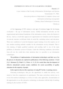 - Zhurba, L.V. and Gerasimenko, I.V. (orcid.org/0000-0001-6678-8142) (2017) Experience using ICT in e-learning courses In: All-Ukrainian Student Scientific Internet Conference "Modern Information Technologies in Education and Science" Інформаційно-комунікаційні технології в освіті та науці . УДПУ ім. Павла Тичини, м. Умань, Україна.