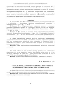 - Жданович, Юлія Миколаївна (2017) Socio-pedagogical support of meaningful leisure activities of pupils at the place of residence In: Сучасний виховний процес: сутність та інноваційний потенціал , 5 (5). НАІР, м. Івано-Франківськ, Україна, pp. 90-93.