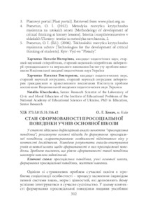 - Хомич, О. Л. (2017) The state of formation of prosocial behavior of main school students Теоретико-методичні проблеми виховання дітей та учнівської молоді, 2 (21). pp. 312-323. ISSN 2308-3778