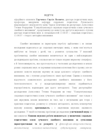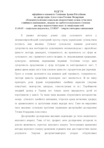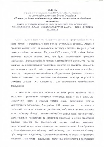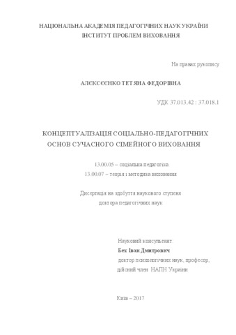 - Алєксєєнко, Т.Ф. (2017) Conceptualization of Socio-Pedagogical Bases of Contemporary Family Education Masters thesis, Інститут проблем виховання.