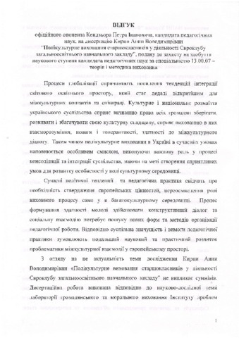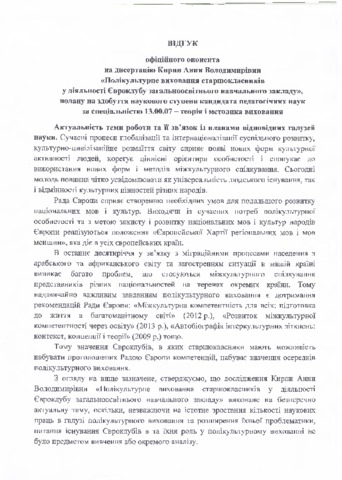 - Кирпа, А.В. (2017) Multicultural Education of Senior Students in Euroclubs of Comprehensive Secondary Educational Institution Dissertation candidate thesis, Інститут проблем виховання.