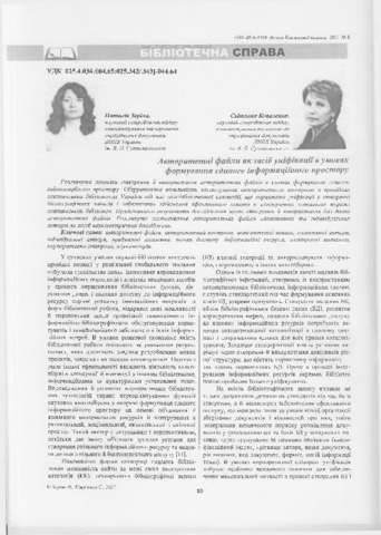 - Зоріна, Наталія Євгенівна (orcid.org/0000-0001-7627-7805) and Коваленко, С. Г. (orcid.org/0000-0002-5836-6422) (2017) Authoritative files as a means of unification in the context of a common information space Вісник Книжкової палати, 9 (254). pp. 10-16. ISSN 2076-9326