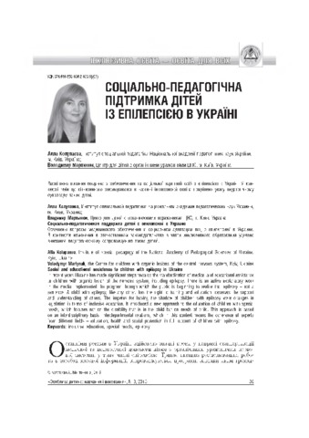 - Колупаєва, А.А. (orcid.org/0000-0002-4610-5081) and Мартинюк, В.Ю. (2015) Social and educational assistance to children with epilepsy in Ukraine Особлива дитина: навчання і виховання, 3 (75). pp. 35-39. ISSN 2312-2781