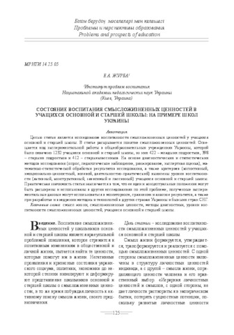 - Журба, Катерина Олександрівна (2017) The state of raising the values of life in the pupils of primary and secondary schools: on the example of Ukrainian schools Проблемы и перспективы образования, 3 (32). pp. 125-133.