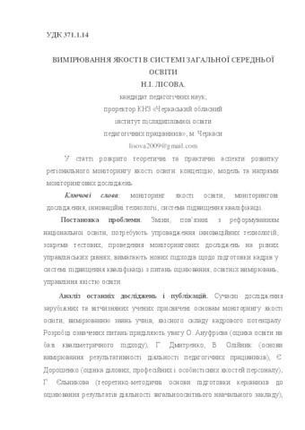 - Лісова, Н.І. (orcid.org/0000-0001-9363-0981) (2014) Measurements in the system of the general average education Нова педагогічна думка, 3 (79). pp. 190-193. ISSN 2520-6427