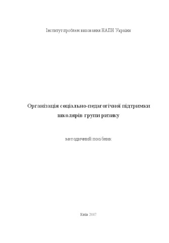 The manual outlines the main characteristics of social risk groups and methodological provision of their socio-pedagogical support in a comprehensive institution, taking into account current challenges and factors of victimization, by developing partnerships with other social institutions. Examples of technologies, trainings, various forms and methods of such work are presented. The manual is intended for school social educators. It can be used in the relevant purposeful activity of school-based practical psychologists, class leaders, in extracurricular educational institutions, in social work with children and students of social workers and volunteers; in the content of the training of future teachers and specialists in social work in universities.
