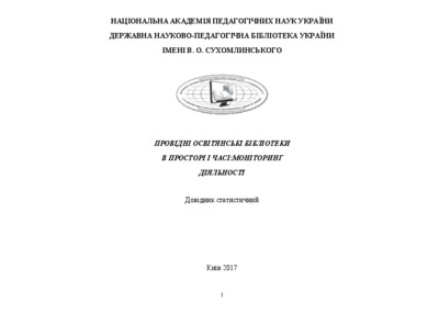 Здановська, Валентина Петрівна and Хемчян, Ірина Іванівна (2017) Leading pedagogical libraries in space and time: monitoring of activities . Державна науково-педагогічна бібліотека України імені В. О. Сухомлинського.
