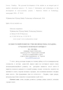 - Лісова, Н.І. (2016) The personal development of the student as an integral part of the modern educational process Information and technologies in the development of socio-economic systems, 5. pp. 39-47.