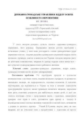 - Лісова, Н.І. (2016) Public-public administration department of education: features and prospects Нова педагогічна думка, 4 (88). pp. 8-13. ISSN 2520-6427