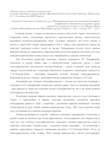 Особливості змістового наповнення курсу «Бібліографознавство».pdf - Accepted Version Download (138kB) | Preview |