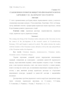The coming-into-being of the Ukrainian studies education at the University level in the context of the development of the research centers in Czechoslovakia, Germany, USA and Canada is analyzed in article. The author informs the readers with the founders of the Ukrainian science abroad as well as the state and problems of the Ukrainian studies development.