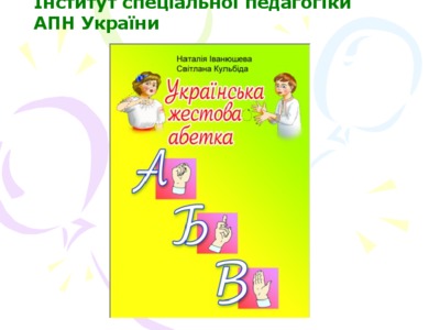 | Keywords: | The book, Ukrainian sign language, deaf children,Natalia Ivanyusheva, Svitlana Kulbida |