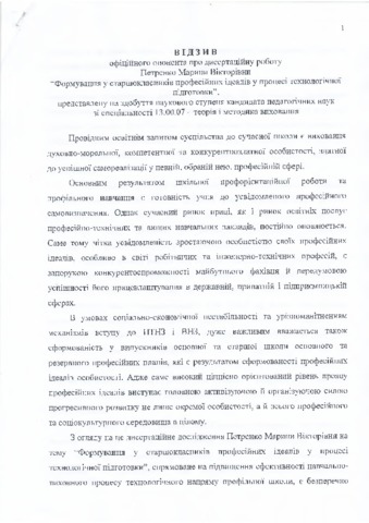 - Петренко, М.В. (2016) Petrenko. Formation of Professional Ideals of High Schoolchildren in the Process of Technological Training Dissertation candidate thesis, Інститут проблем виховання.