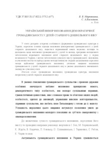 The article deals with the historical features of formation of civil culture in Ukraine; outlines the key approaches of education for democratic citizenship in children preschool age; filed a comparative analysis of scientific opinions and research on civic education of children and young people, methodical software of moral education of children of the senior preschool age in the period of independence of Ukraine; to ensure that the content of modern civic education, modernizing tools and selection of effective methods of influence on the senior preschool children in the process of civics, specified tasks of upbringing of citizenship in children of the senior preschool age in the conditions of a kindergarten at the present stage.