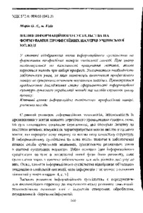 - Морін, О.Л. (orcid.org/0000-0001-5756-8359) (2017) The influence of the information society on the formation of professional intention of student youth Нові тенденції і явища у дитячому і молодіжному середовищі в Україні: цивілізаційний, культурологічний, інформаційний виміри. pp. 140-148. ISSN 978-966-2748-95-6
