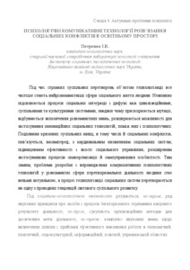 - Петренко, Ірина Володимірівна (orcid.org/0000-0002-5900-0852) (2017) Psychological communicative technologies of solving social conflicts in the educational space Personality, family and society: issue of pedagogy, psychology, politology and sociology. pp. 189-192. ISSN 978-9934-8675-4-5