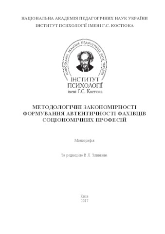 In the collective monograph written by the scientists of the Laboratory of Methodology and Theory of Psychology Institute of Psychology named after G.S. Kostyuk NAPS, the concept of the authenticity of experts in socio-occupational professions is analyzed. Based on the achievements of various directions of psychological science and related disciplines. It is specially noted the theoretical principles of studying the problem of personality’s authenticity, through the empirical study the peculiarities of the authenticity of specialists of various socio-occupational professions are determined. It is spoken in detailthe aspects of the formation of authenticity in contemporary conditions. The obtained results of the research can be used not only at different stages of personal professional growth, but also in general promote the more effective use of the concept of authenticity in scientific research and various areas of social practice. The book is of great help topsychologists-scientists, psychologists-practitioners, educators, social workers, students of higher educational institutions, all representatives of professions such as "man-man", as well as to anyone interested in the problem of professional development of the individual.