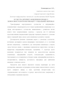 The complexity of interpersonal communications with the means of modern media, in particular social networks, their multicultural multidirectional and multilingualism, virtuality and informational and cognitive saturation, as well as the synthesis of accessibility, interactivity, speed and value of information, become important aspects of interaction and cultural exchange between participants in information and education the environment.