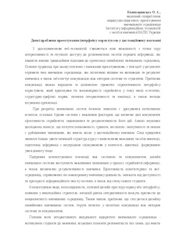 - Коневщинська, О.Е. (orcid.org/0000-0003-4125-8764) (2010) Some problems designing the user interface in distance learning In: Освіта в інформаційному суспільстві: до 25-річчя шкільної інформатики : матеріали науково-практичної конференції . Київськ. Ун-т імені Бориса Грінченка, м. Київ, Україна, pp. 102-103.