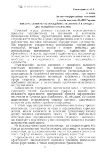 Multimedia means of training is an integral part of a holistic educational complex. Their use can have a positive effect in the organization of multi-channel and poly-modal perception of educational information, while increasing the cognitive motivation regarding the emotional sphere of students, developing their thinking, creating a problem situation in applying the problem-heuristic method of learning.