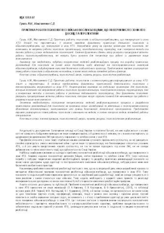 | Keywords: | servicemen, psychological request, trauma, resources, psychological rehabilitation |
