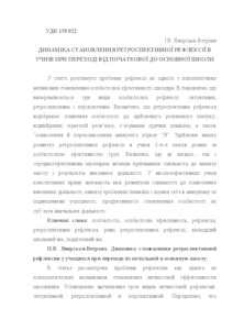 Reflection is discussed as one of the psychological mechanisms of pupil’s personal efficiency formation. It is shown that three types of personal reflection can be distinguished: situational, retrospective and prospective. It is determined that retrospective reflection presents personal attitude to performed mental searches, discovered strategies for task solution, determined causes of errors and "understanding and rethinking of a one-time self-image". The analysis of retrospective reflection of 3-6-class pupils, having different personal efficiency, is performed. The obtained data allows us to determine five levels of retrospective reflection: low, below average, average, upper average and high. Pupils with low and average learning efficiency have, in general, the tendency to analyze the contents and results of their activities. However, during the transition period (at the end of primary school year and at early secondary school years), pupils, especially those who have average learning efficiency, show destructive tendencies in development of this type of reflection that is a factor of reducing of personal efficiency of such pupils. Pupils with high efficiency show direct correlation between development of ability to understand performed activities, to analyse made mistakes and to assess themselves in the past and successfulness increasing, productive personal formation as an agent of learning activities.
