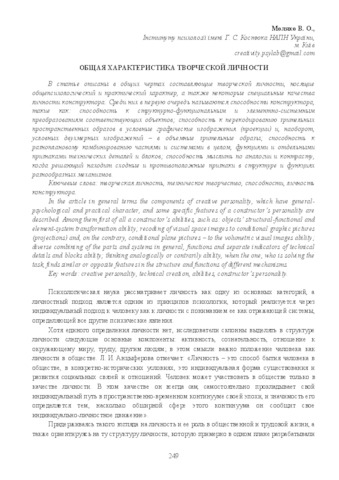 | Keywords: | the creative personality, technical creation, abilities, constructor’s personality |